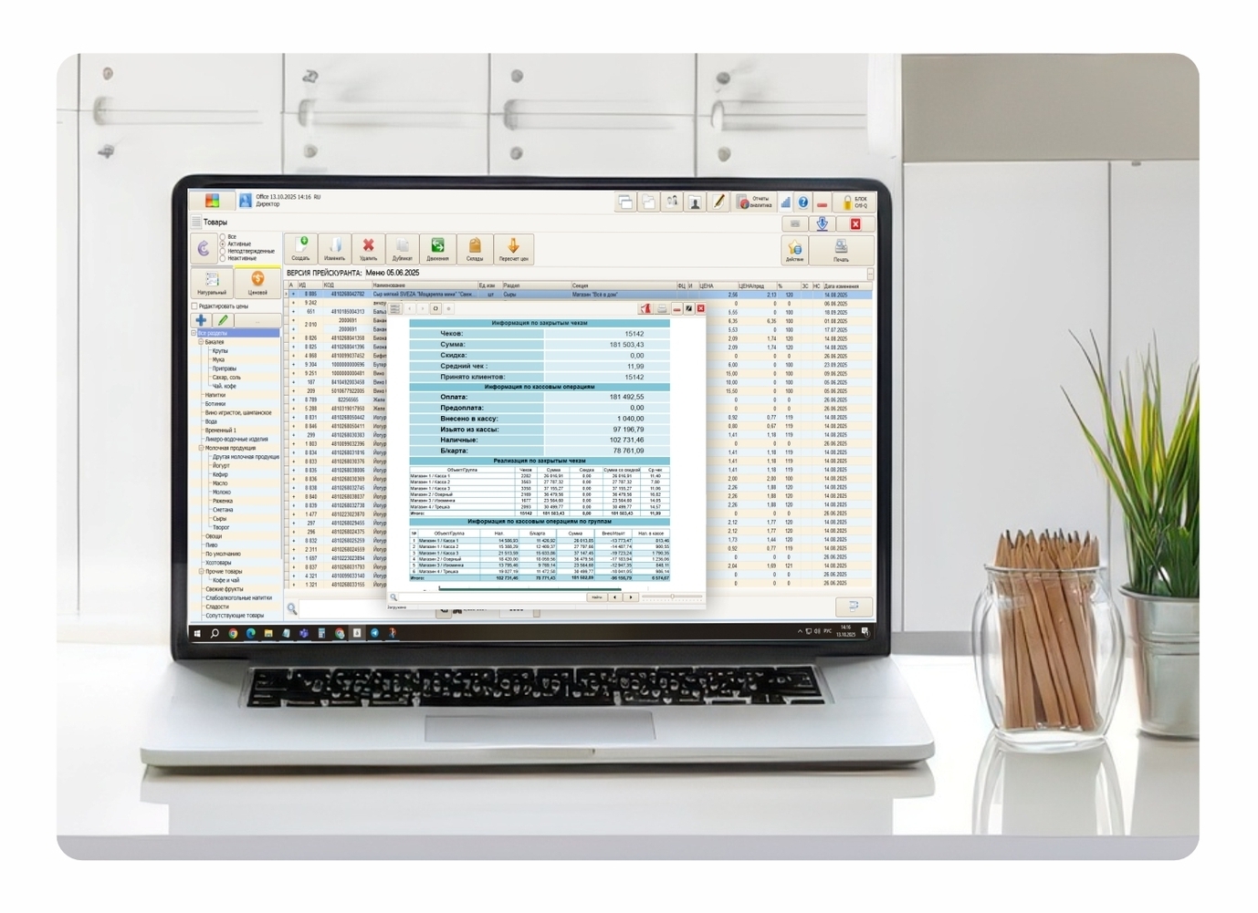 Адаптивная система аналитики – суммы продаж, топовые и непопулярные позиции, временная динамика по дням, часам, кассирам. Создание и настройка отчетов.